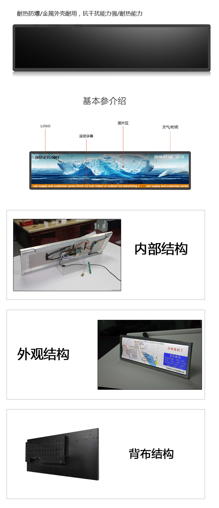 如今,隨著液晶顯示技術的發展,出現了新型的長條液晶產品,長寬比例超過3:1的液晶長條屏廣泛應用于各行業領域,在市場上大受好評。