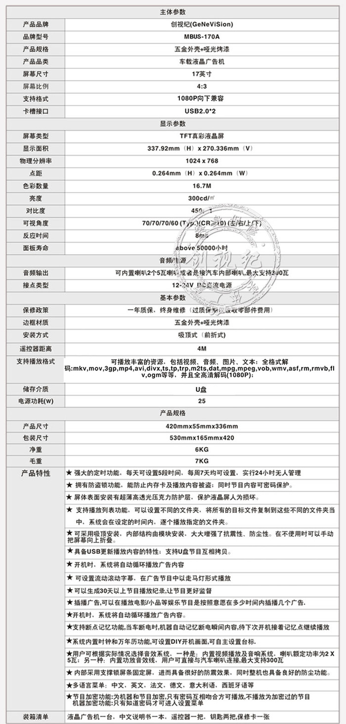 17英寸車載廣告機