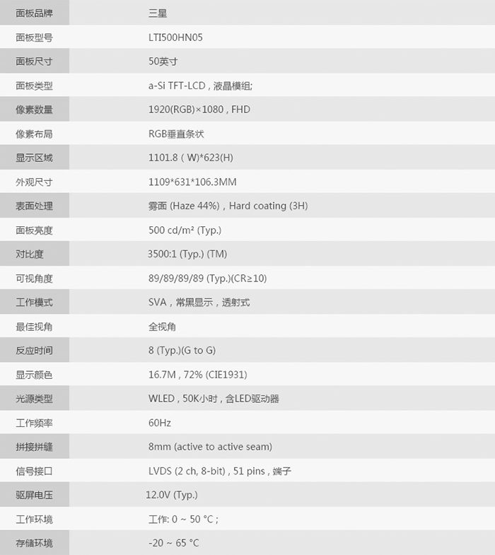 液晶屏尺寸 50 寸TFT真彩液晶屏