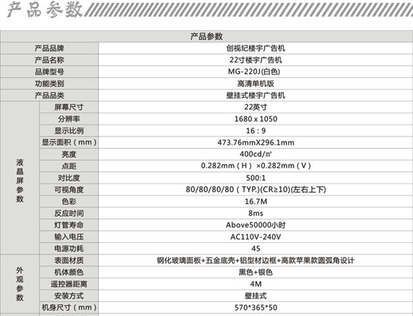 液晶屏尺寸        22寸TFT真彩液晶屏