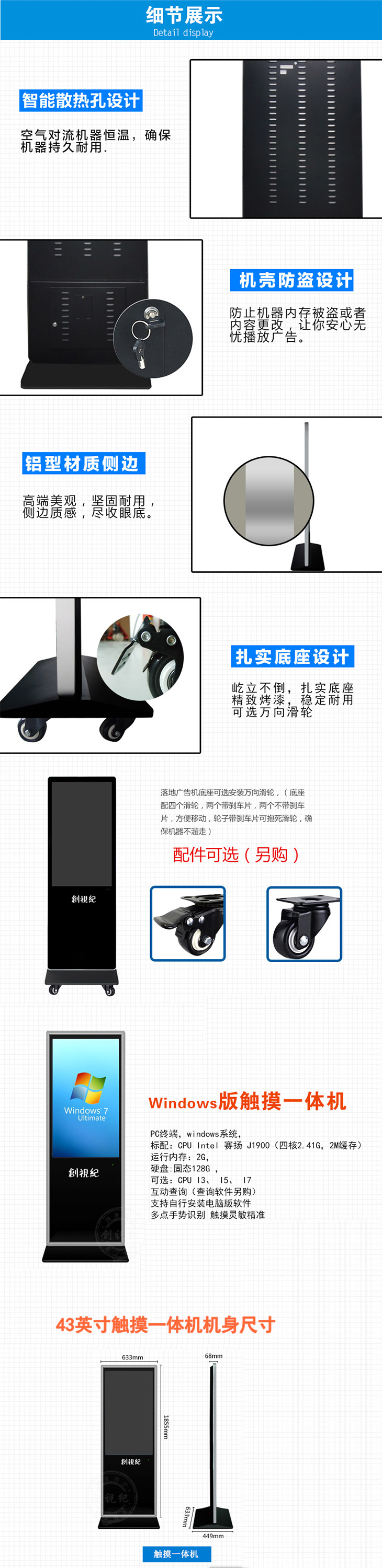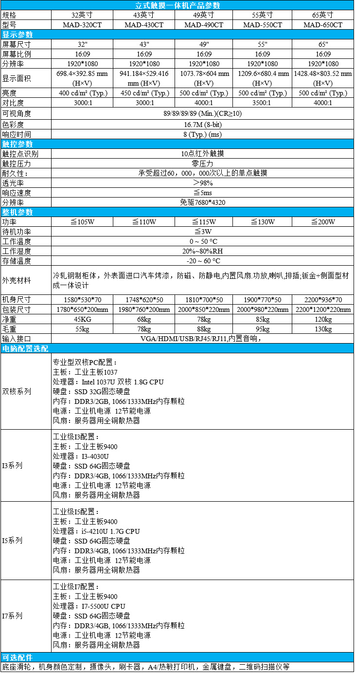32/43/49/55/65英寸落地式觸摸一體機