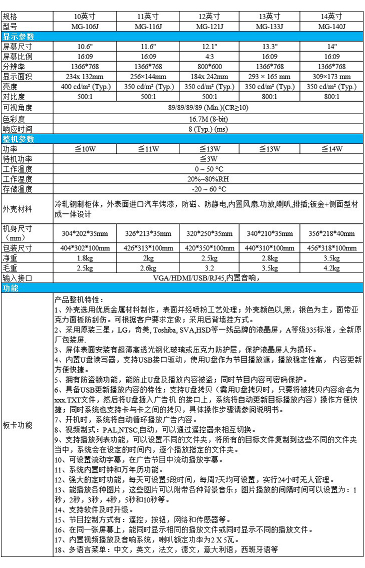 10/11/12/13/14英寸樓宇壁掛廣告機