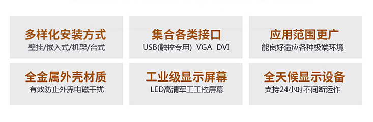 顯示亮度: 500cd/m2 | 環境濕度: <80% span=""> | 工作溫度: -10℃-60℃ |