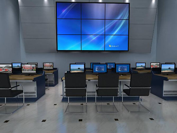 二、操作操控臺(室)裝修及設備方位要求 1) 操作操控電腦的方位應在拼接屏幕的正對面,要求操作員能夠便利直觀的看到拼接屏的操作。假如有專門間隔的操作操控室,則操作操控室與大屏顯示室之應有通明玻璃,便利操作員的觀看。 2) 操控電腦應盡可能坐落拼接屏的正對面方向,并與拼接屏有適宜的間隔,以便于調試、顏色調整等操作。 3) 圖畫操控器的擺放應坐落幕墻旁邊或后邊的通道(機柜內),應盡量靠近投影箱體的接口,削減RGB走線間隔。