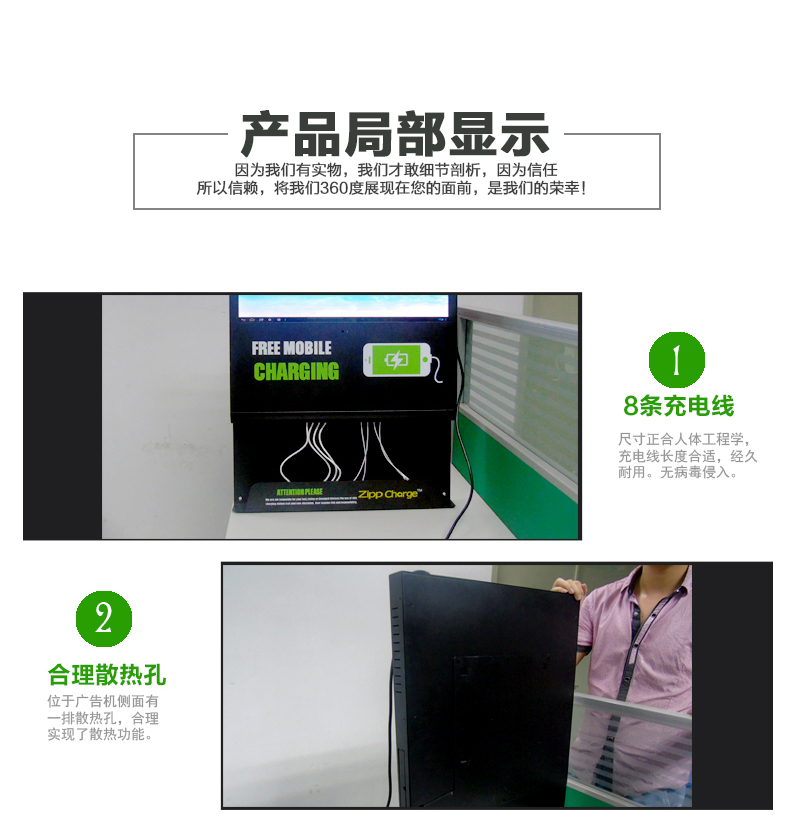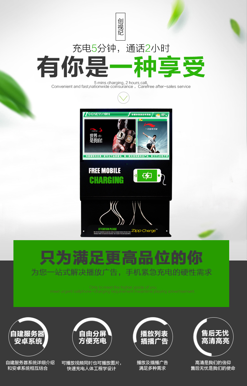 創視紀壁掛式手機充電廣告機火車站手機加油站