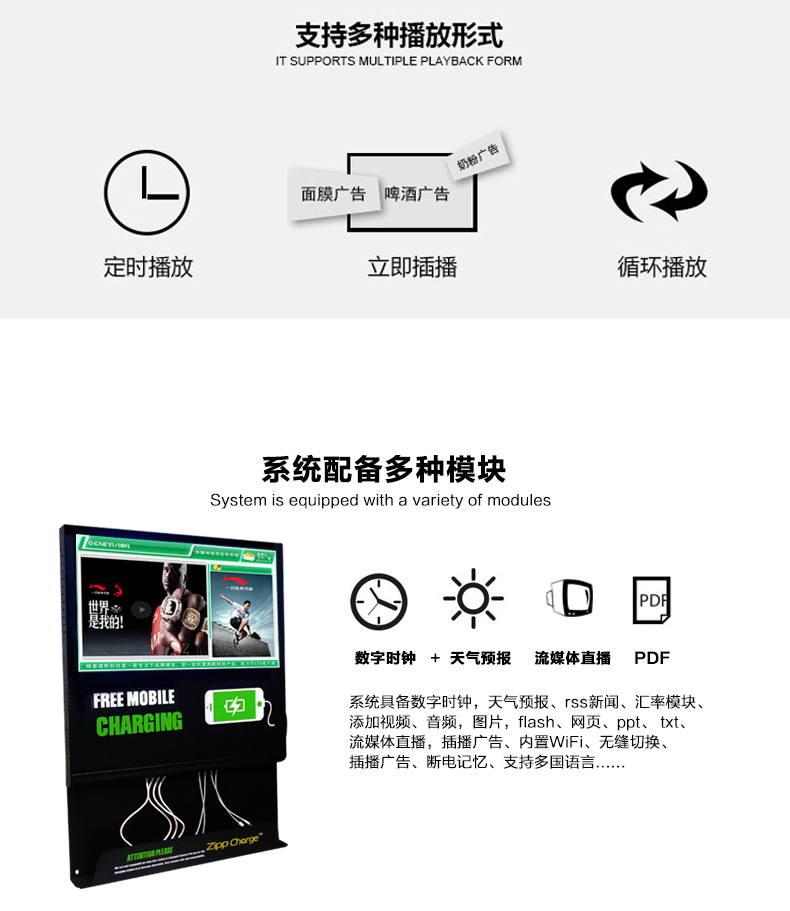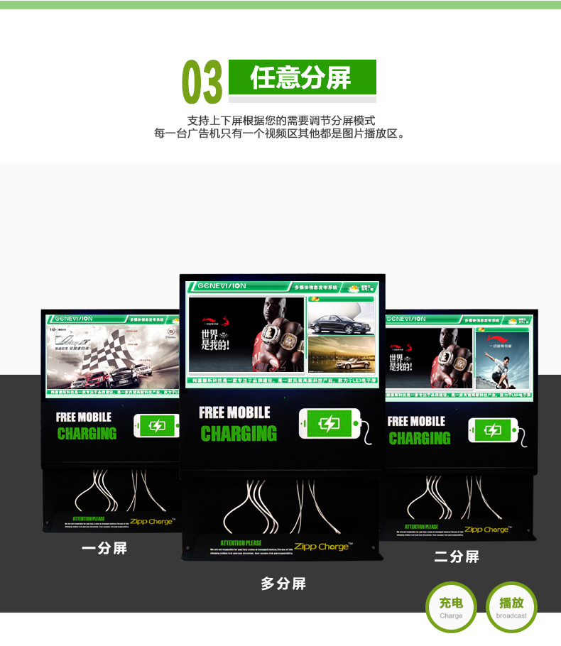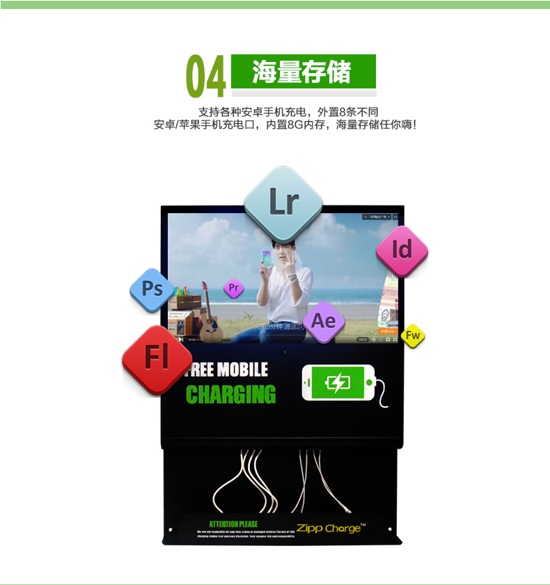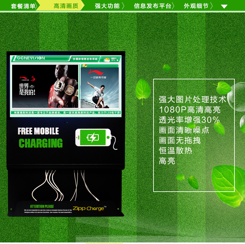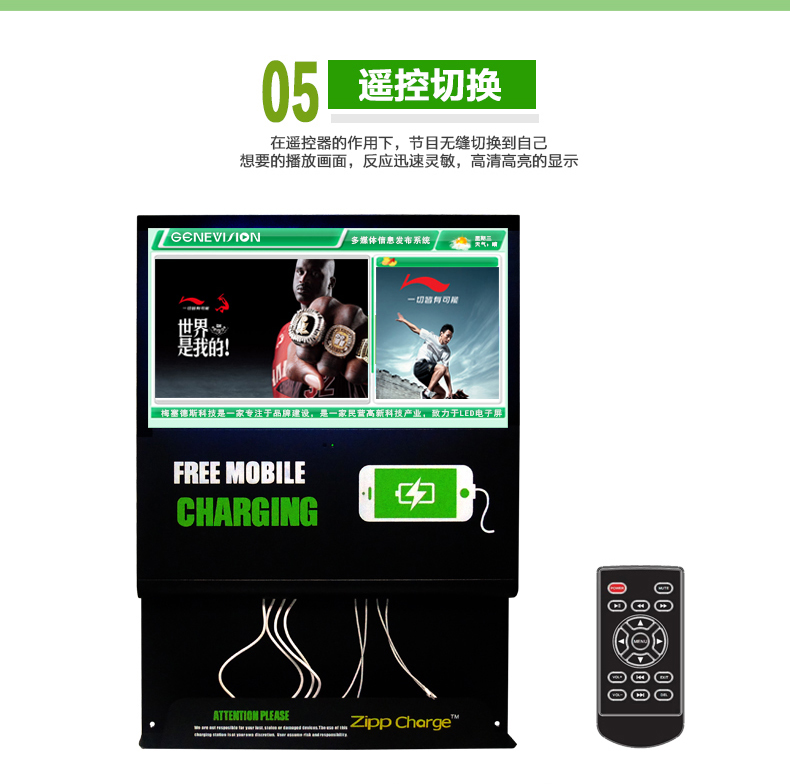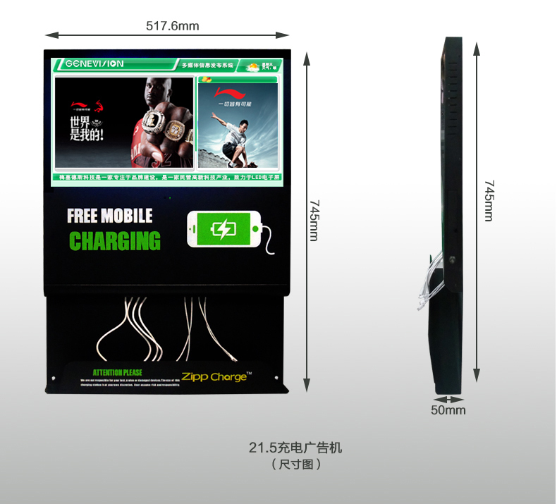 手機近幾年已經走入了每個人的生活,無論到哪里都會隨身攜帶它,因為它為我們的生活帶來了便捷,已經成為生活必需品。幾年前,有旅客在車站留言薄上反映:在候車時,手機沒電了,又趕上沒帶充電器,非常不方便。有需求就有商機,于是第一代手機充電站(別稱“手機加油站”)應運而生。隨后,手機充電站陸陸續續在一些城市亮相。投一個一塊錢的硬幣,就可實現為手機充電,這為很多手機持有者提供了方便。除此之外更令人關注的是廣告位設計帶來的廣告功能。第一代手機充電站的廣告位一般以海報和燈箱的方式展現,運營成本高,效果不佳。梅塞德斯科技緊跟時代步伐,研發出新型手機充電站,我們稱之為“手機充電廣告機”。