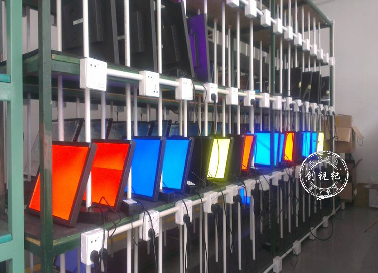 第一批要出的貨是15寸和17寸的液晶顯示屏,共有200臺,機器搭載HDMI和VGA接口,整機以黑色為主體,采用日本夏普原裝進口顯示屏,分辨率達到1024*768,顯示畫面清晰無比,圖中正是我司正在為顯示器熱機測試,有需要的可來電咨詢,來廠考察!